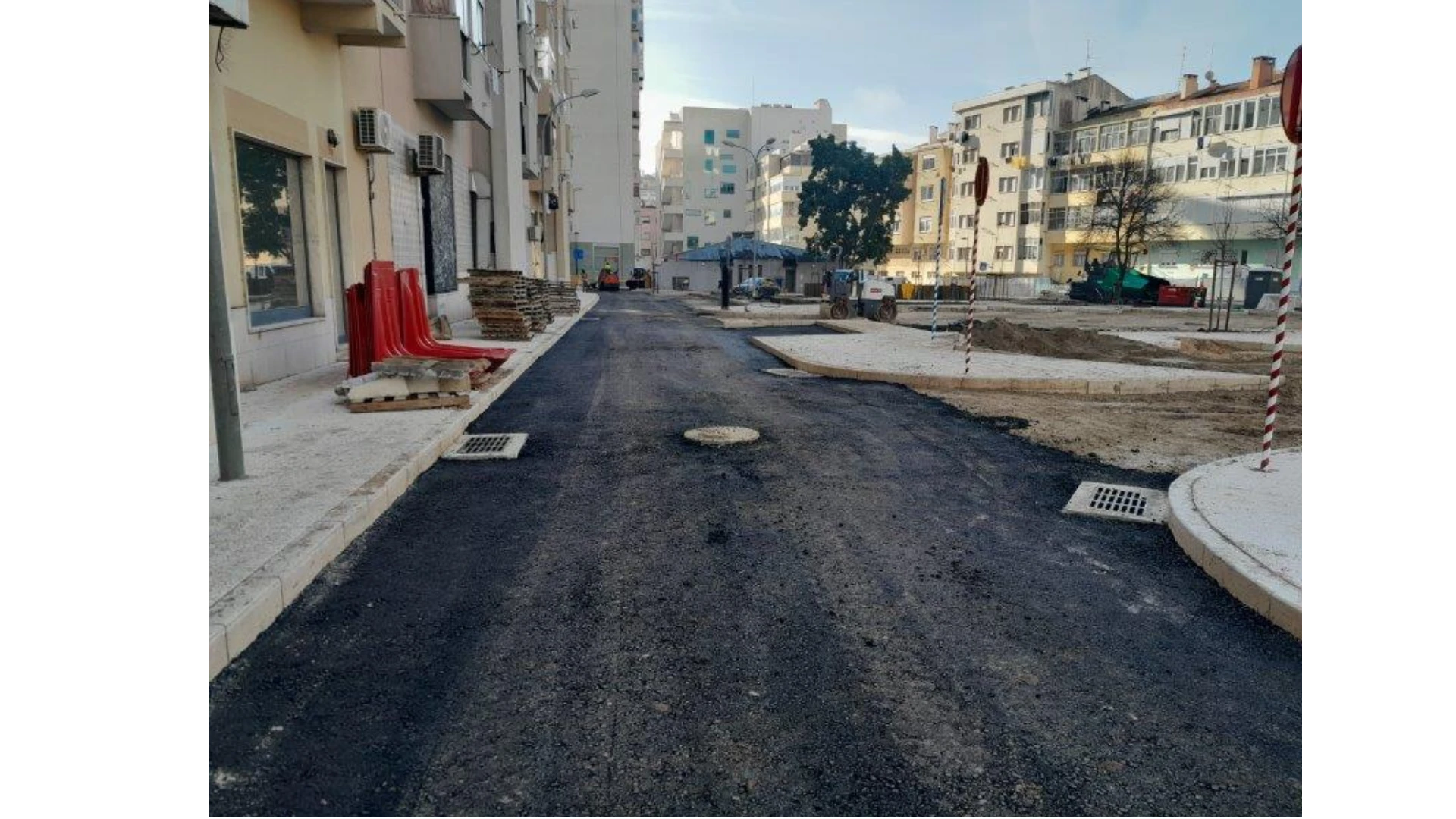 Atualmente encontra-se em fase de conclusão os trabalhos de reposição de pavimentos rodoviários e pedonais afetados pela obra, bem como a reintegração do mobiliário urbano e a execução dos arranjos exteriores.